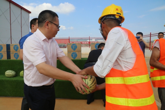 8月5日,高溫酷暑,南旅建工集團黨委書記、董事長陳皓、黨委副書記、總經理王彥、副總經理龔戩、紀委書記王小華率相關部門赴我司“南昌市第六糧庫重建工程”、“滕王閣南擴工程”、“繩金塔民俗風情街工程”等項目送清涼,向戰斗在工地一線的全體員工表示慰問,并要求項目部在抓好生產施工的同時,根據天氣變化,靈活安排好職工作息時間,確保安全生產,平穩渡夏。